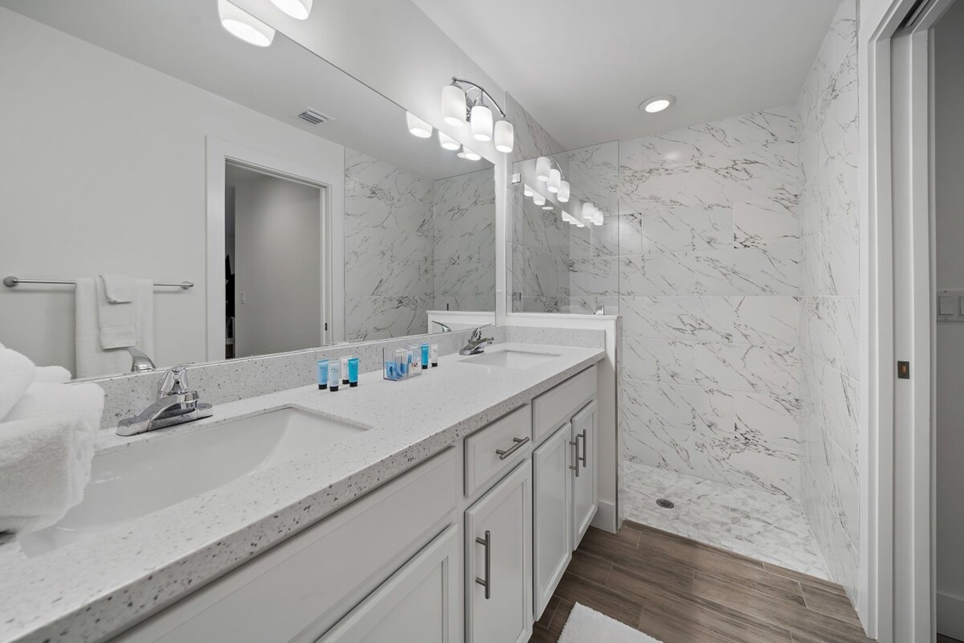 MASTER BEDROOM: Features a king bed with cottons sheets, master ensuites with shower and double vanity, a big screen Smart Tv to connect all your streaming services to watch your favorites.