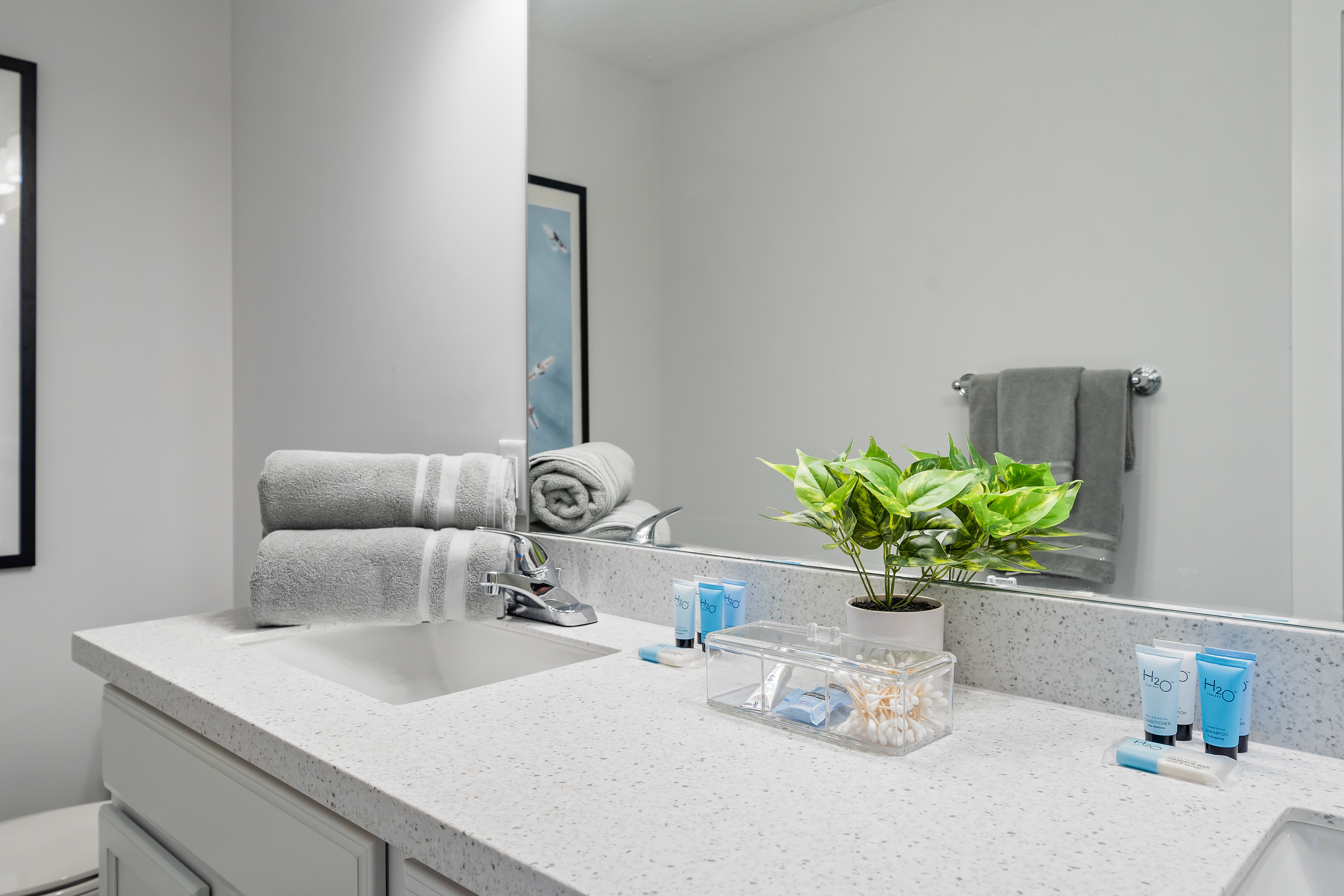MASTER BEDROOM: Features a king bed with cottons sheets, master ensuites with shower and double vanity, a big screen Smart Tv to connect all your streaming services to watch your favorites.