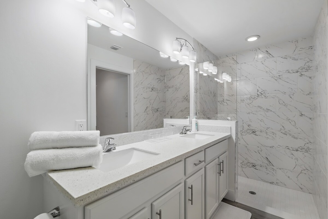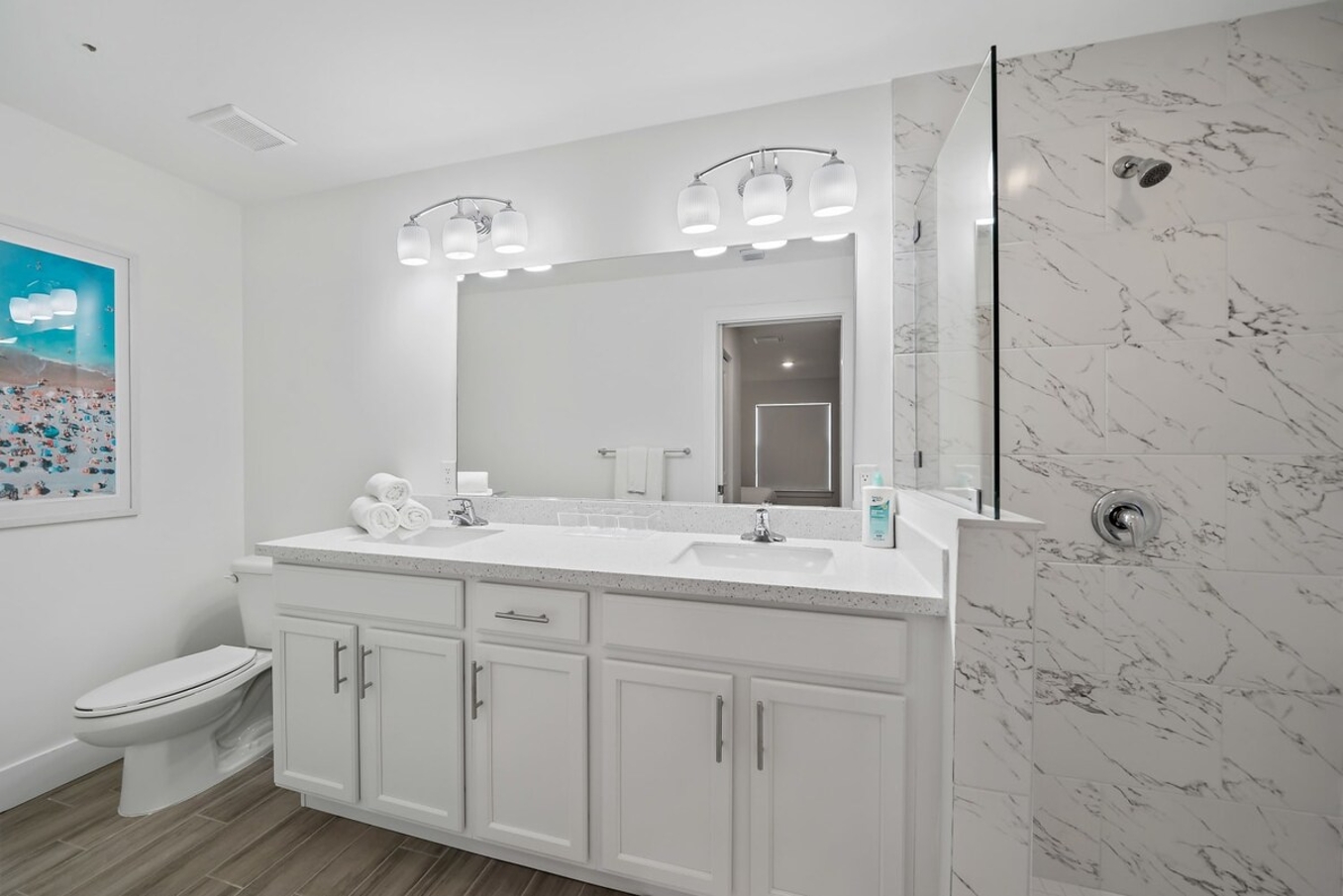 MASTER BEDROOM: Features a king bed with cottons sheets, master ensuites with shower and double vanity, a big screen Smart Tv to connect all your streaming services to watch your favorites.