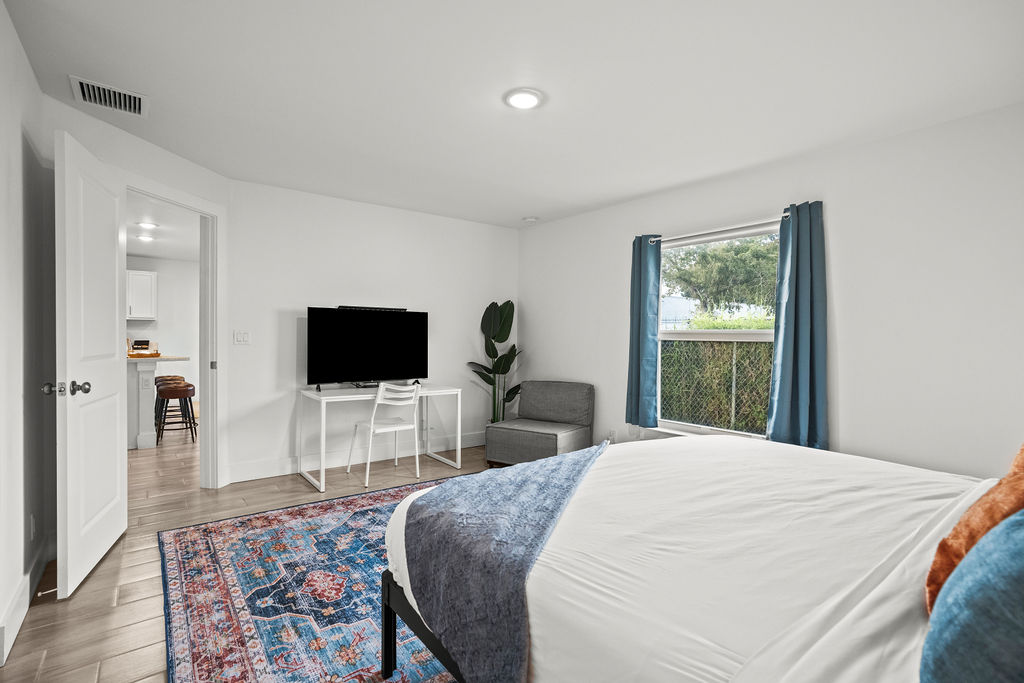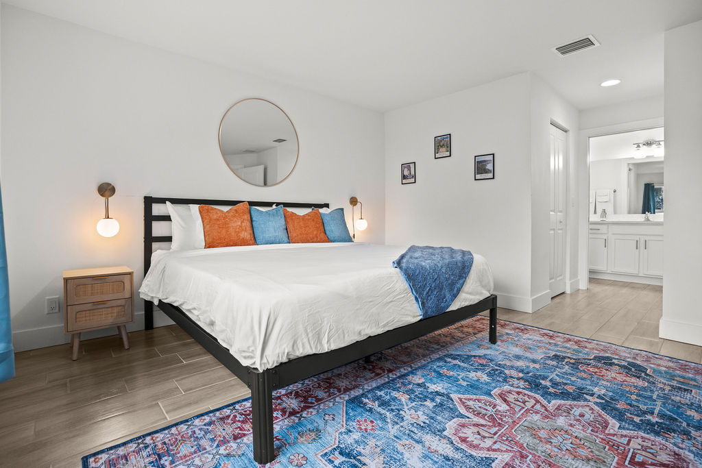 MASTER BEDROOM: Features a king bed with cottons sheets, master ensuites with shower and double vanity, a big screen Smart Tv to connect all your streaming services to watch your favorites.
