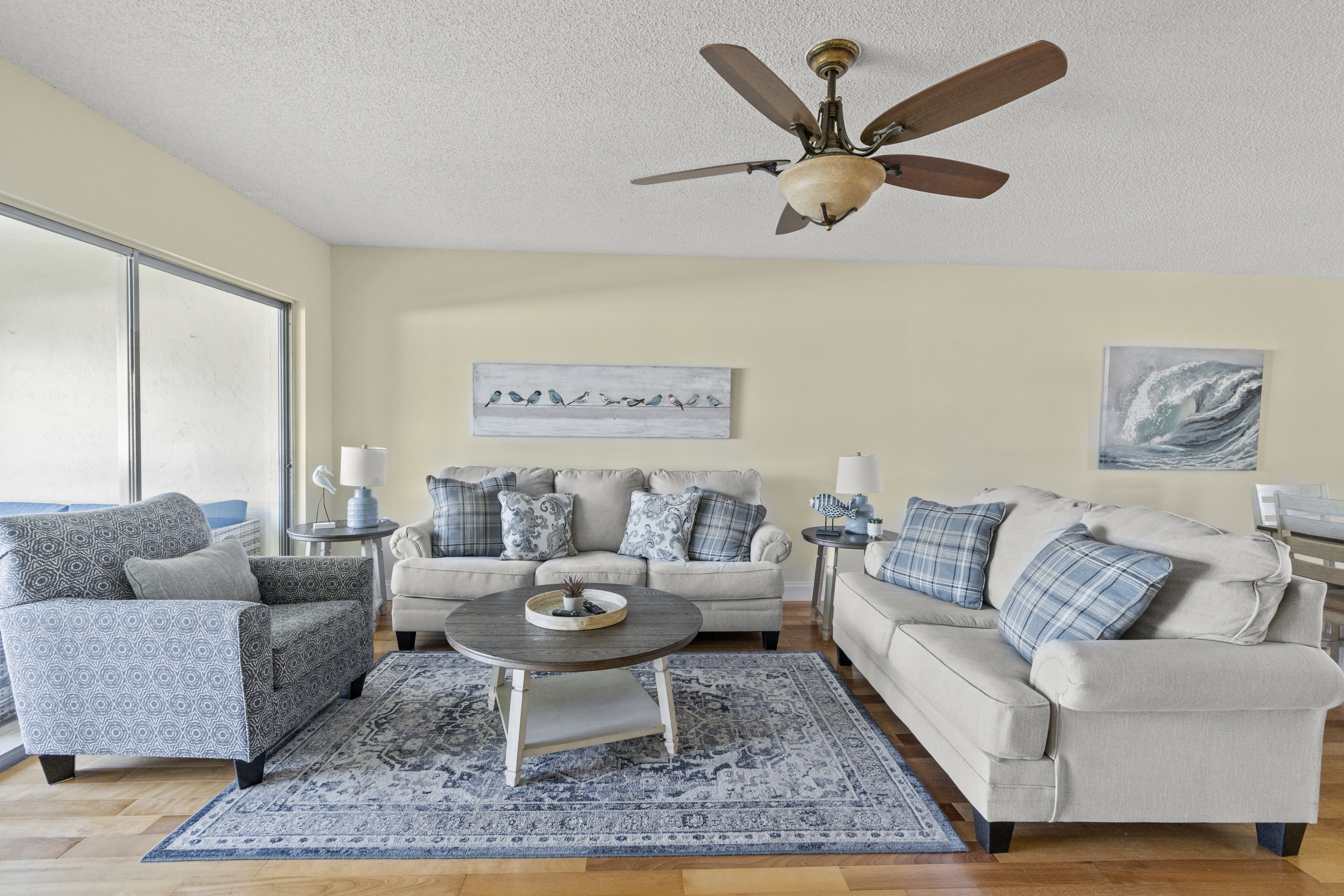 LIVING ROOM: The cozy living area has cute boho coastal furniture leaving you lots of room to lounge after a long day at the beach! A large 65” TV is in the living room so you can sign in to your Amazon Prime Video, Disney+, Hulu, Netflix, AppleTV, HBOMax, etc. (NO LOCAL CHANNELS)