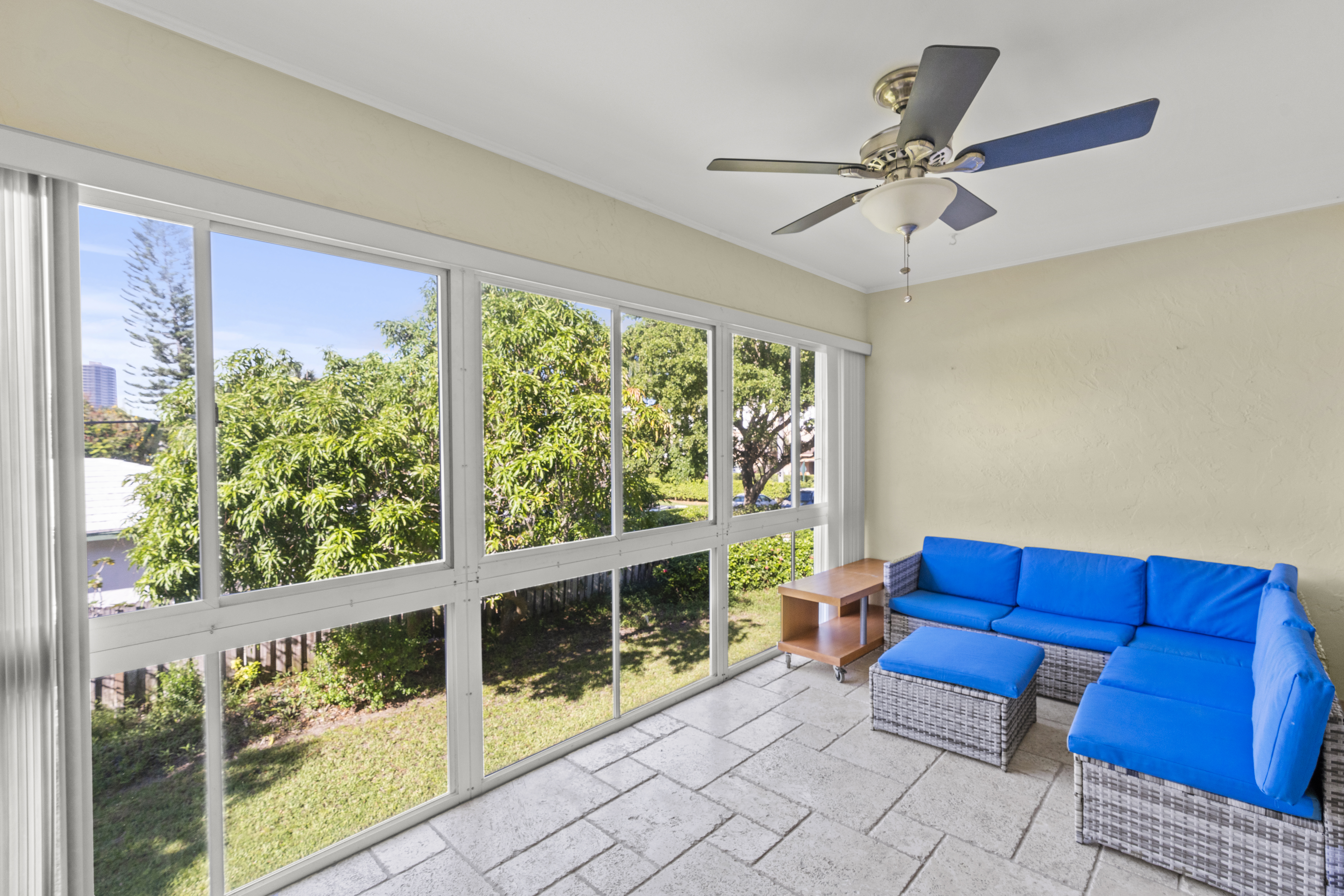 BACKYARD: With luscious greenery, a mango and fig tree in the back, you can soak up some fresh air on the glassed in patio.