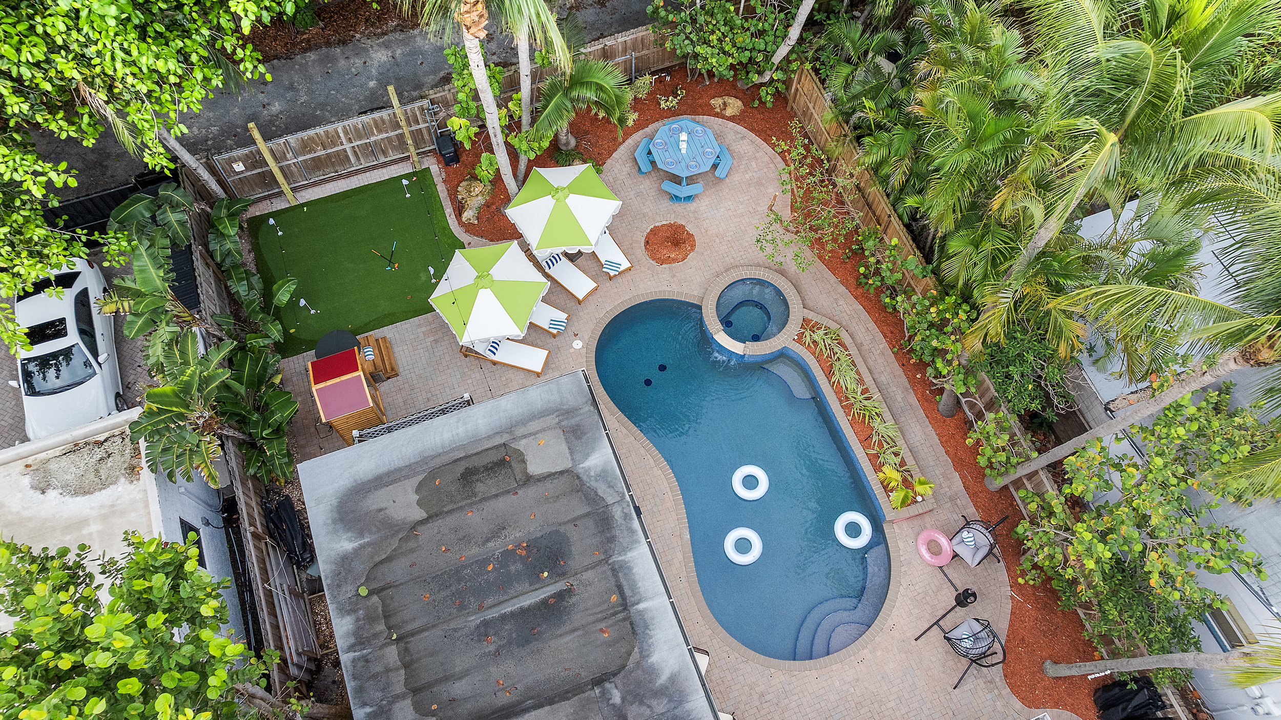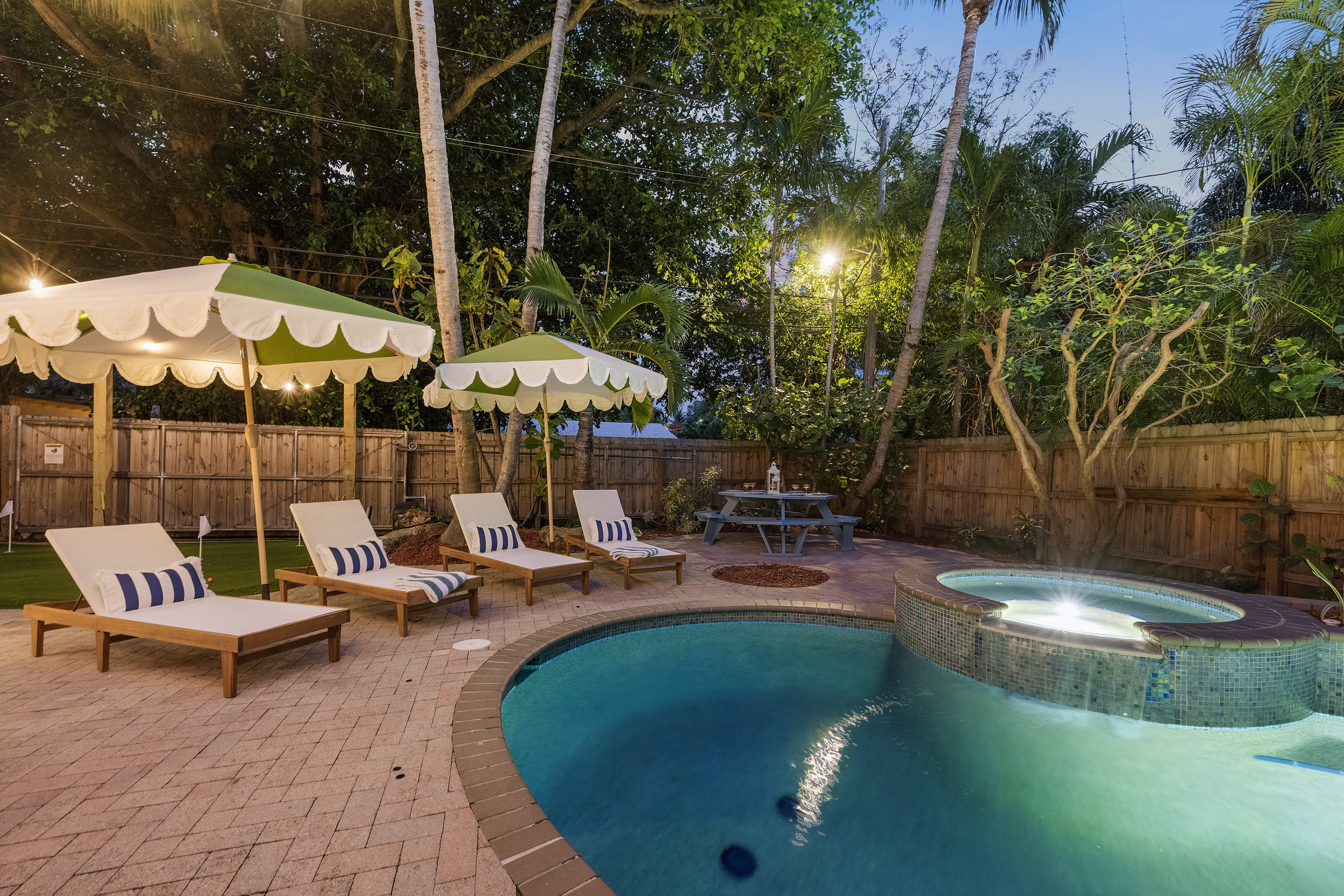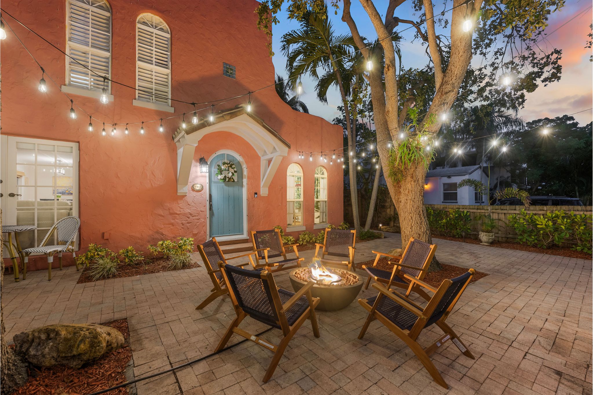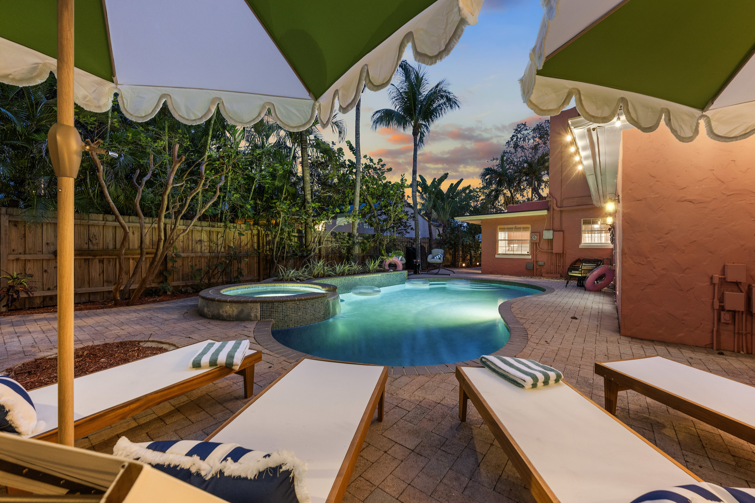 Step outside to a spacious, private backyard designed for both fun and ultimate relaxation. Lounge in the ample seating areas, enjoy meals al fresco with your loved ones, or gather around the fire pit on warm Florida evenings. The expansive yard offers plenty of space for kids and adults to play, unwind, or simply bask in the sunshine. Picture yourself starting the day with morning yoga, a casual game of catch, or soaking in the peaceful tropical surroundings.