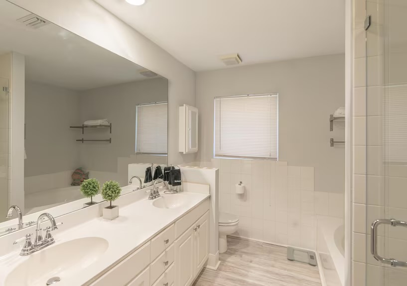 Each bedroom includes luxury linens, smart TVs, ample storage, and calming coastal décor for a restful night’s sleep.