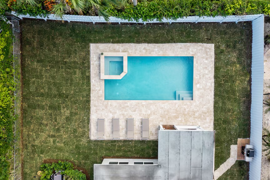 🌴 Unified Outdoor Oasis: Heated pool and spa, decked and gated to blend both homes for a true resort vibe, bathed in sun.