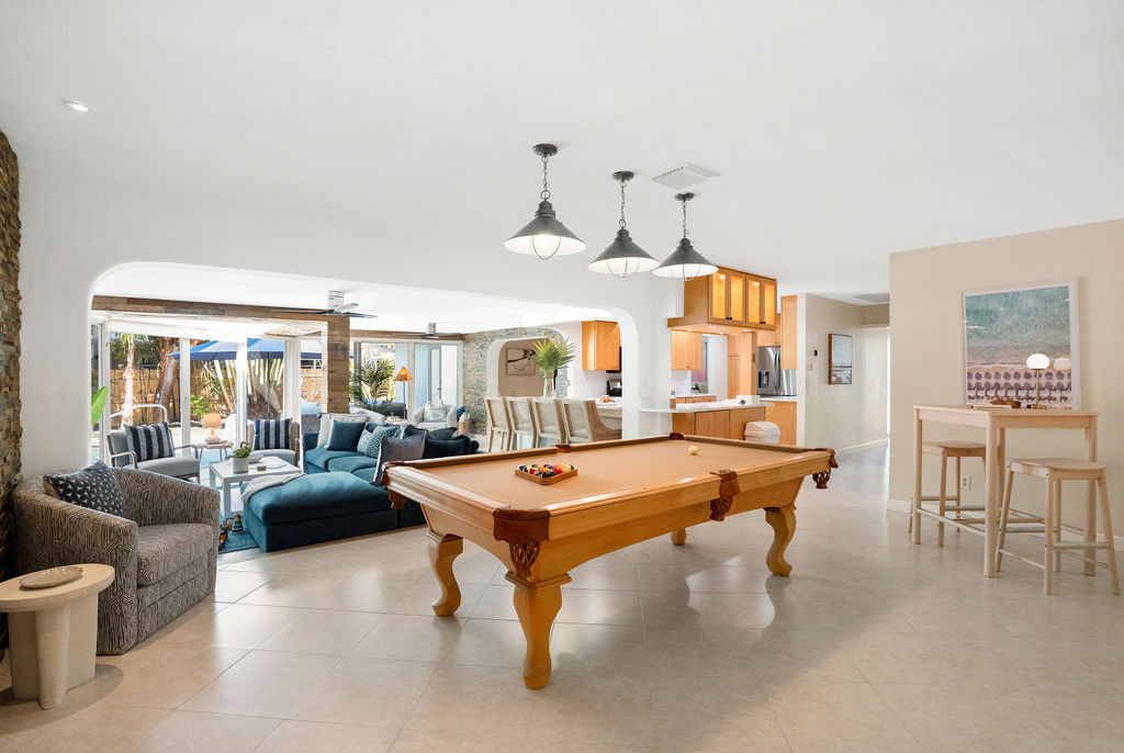 This unique dual-home setup offers 8 spacious bedrooms, 6 full bathrooms, 2 kitchens, 2 living rooms, and plenty of indoor/outdoor lounging areas—perfectly designed to bring people together while still allowing everyone their own private space.